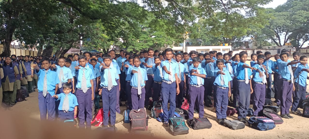 One Billion Youth for Peace pledge at Gowribidanur Chikkaballapur Dist Karnataka Govt PU college on 20th September 2022. 750 students and staff took the pledge.