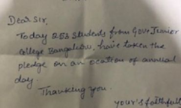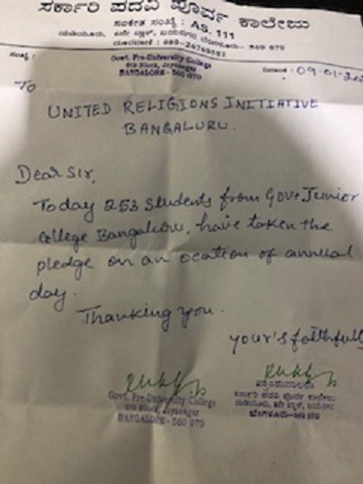 Peace Pledge at Govt. Junior college, Jayanagar, Bangalore on 9th January 2020.
